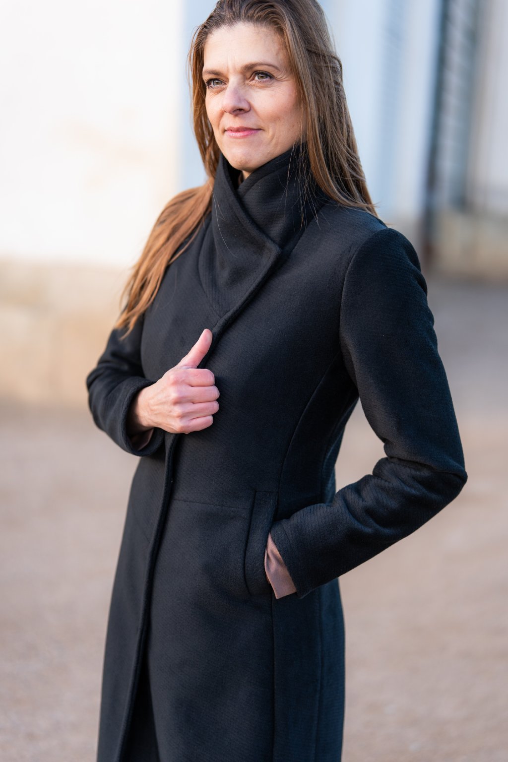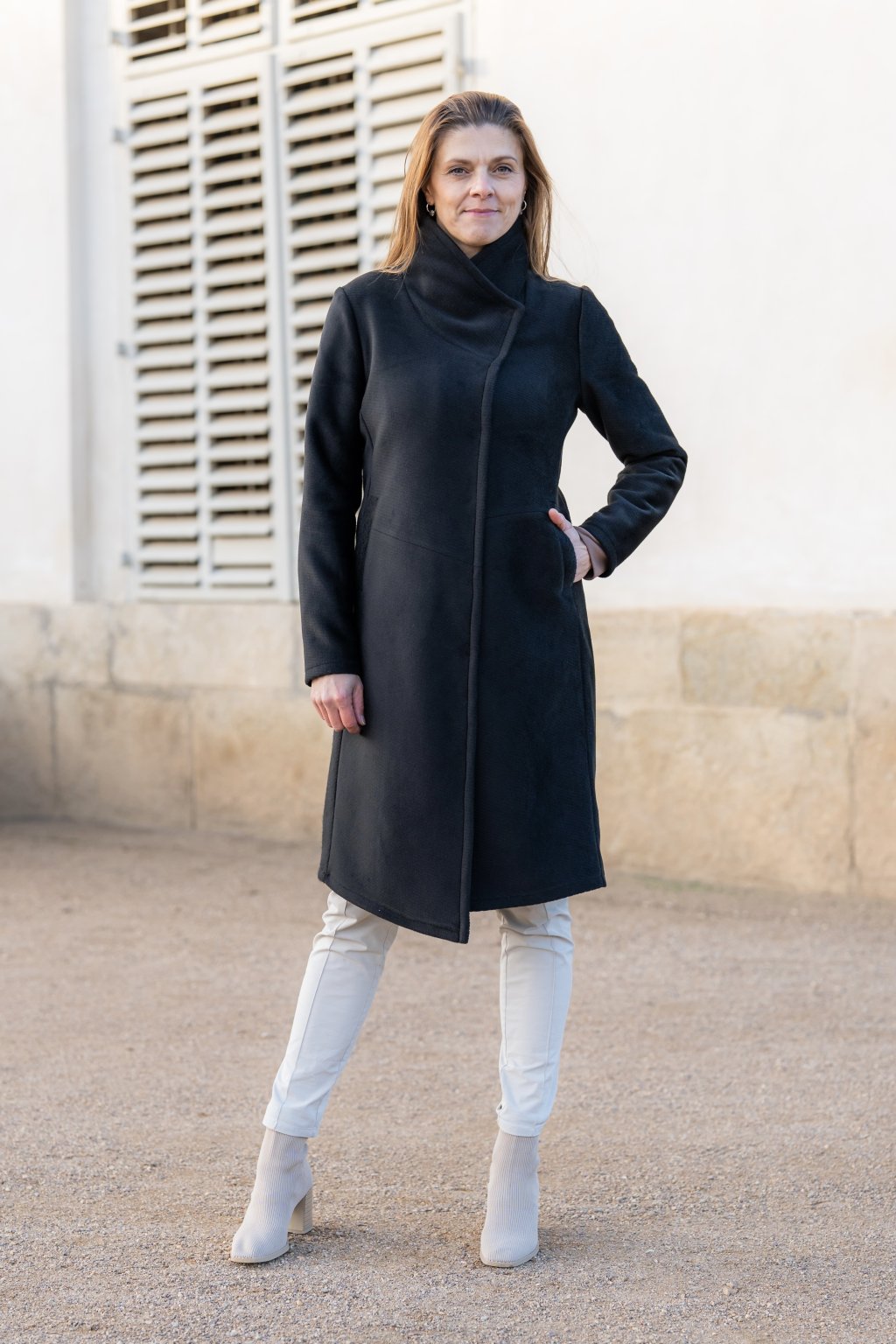 Hřejivý, nadčasový a přitom nenápadně výrazný. Kabát Šik je delší kabát na chladnější dny, ve kterém se budete cítit upraveně do práce, na schůzku i při víkendové procházce městem. Čistá, rovná linie kabátu vytváří elegantní siluetu a lichotí postavě, aniž by působila příliš přísně nebo formálně. Pohodlný střih vám nechá dostatek prostoru pro svetr nebo sako, takže ho snadno navrstvíte podle počasí. Kabát je ušitý z kvalitní flaušové směsi, která příjemně hřeje, je hebká na dotek a dobře drží tvar i při častém nošení.Kabát je navržený a ušitý v Česku v menších sériích, takže působí osobitě a nebudete ho vídat na každém kroku.