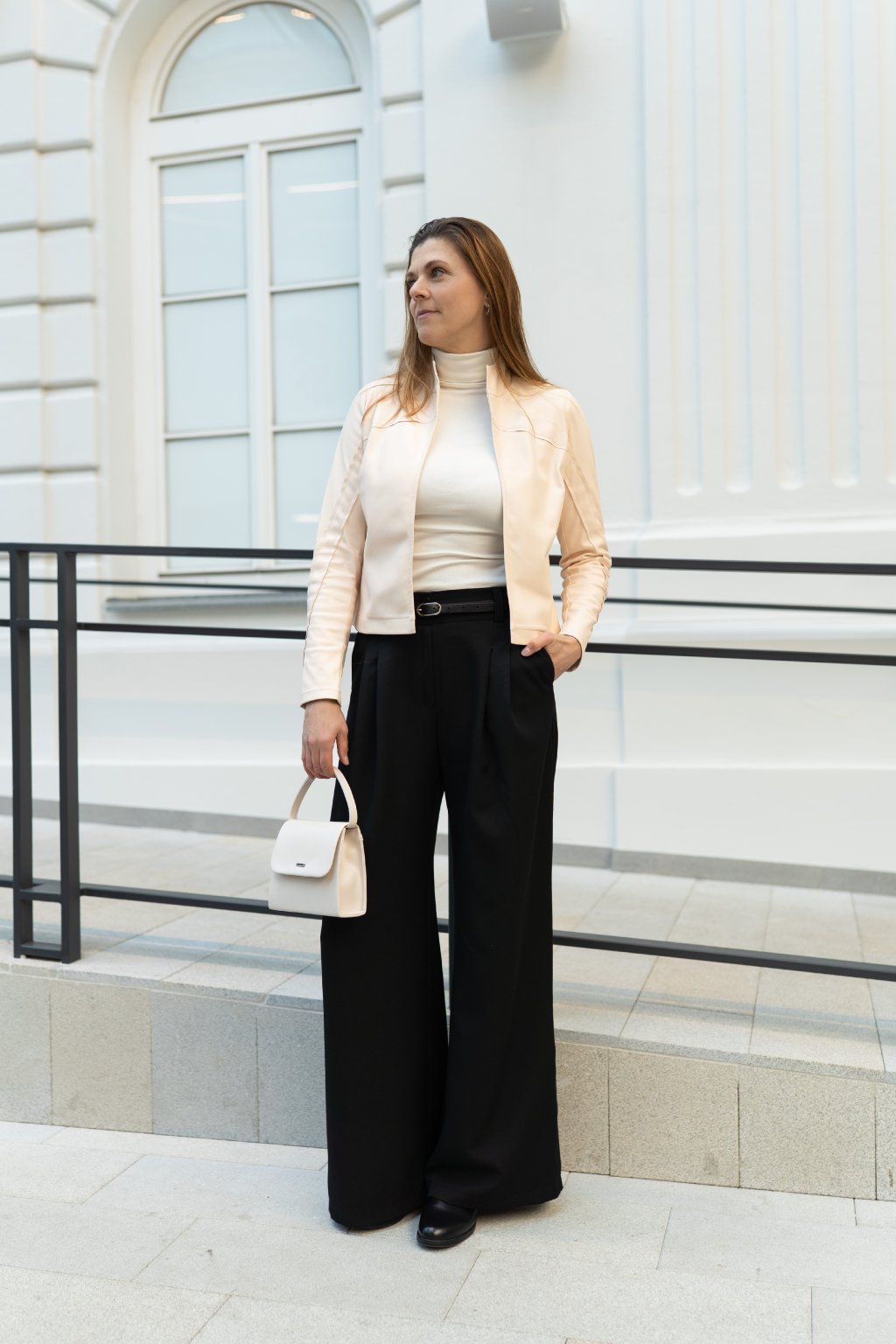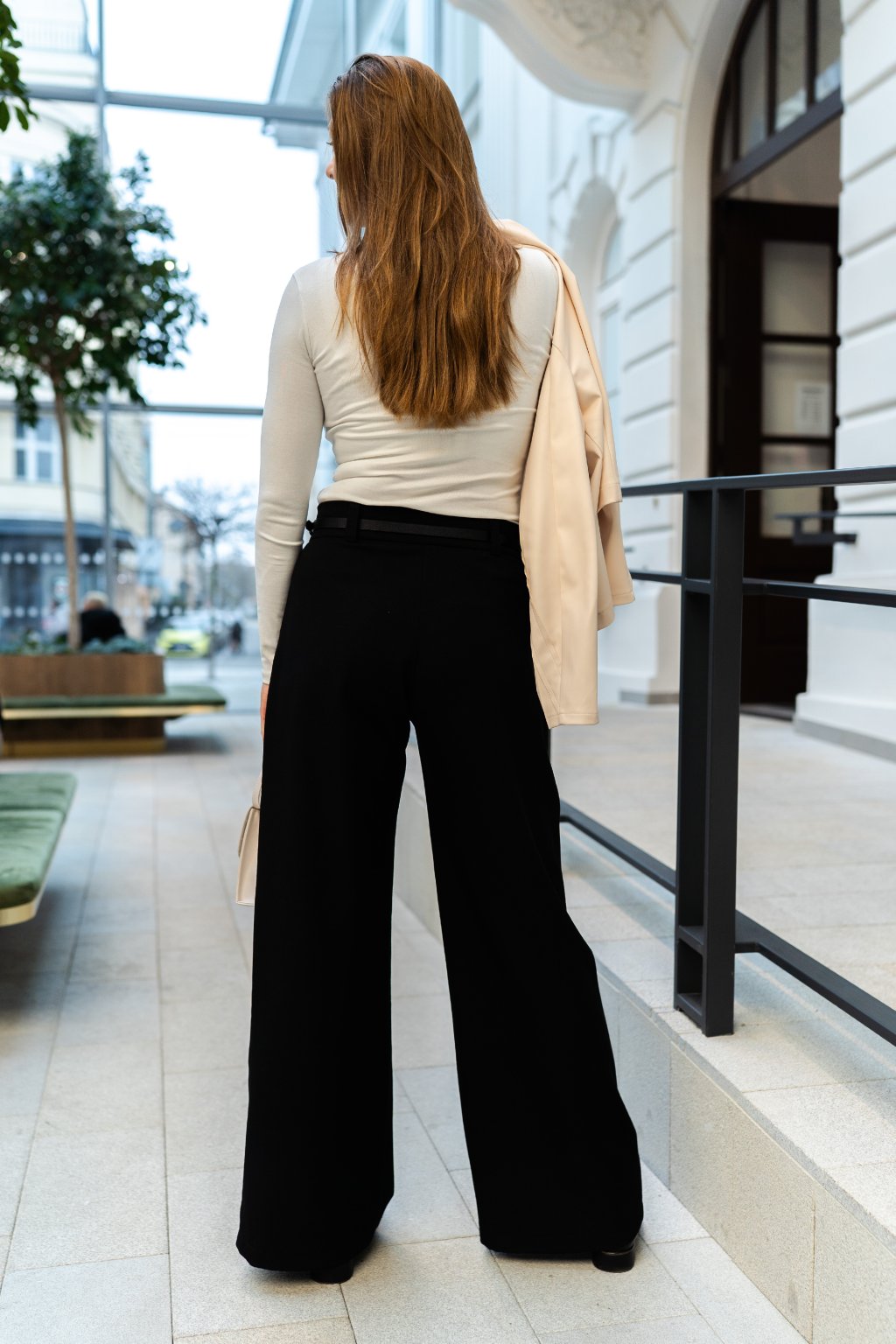 Nadčasové široké kalhoty se záhyby opticky prodlouží nohy a dodají vašemu outfitu šmrnc, ať jste v kanceláři, na schůzce s kamarádkou nebo na večeři ve městě. Široká guma v pase se postará o celodenní pohodlí, aniž by vás kalhoty omezovaly v pohybu. Kalhoty jsou ušity z kvalitní splývavé viskózové směsi, která působí luxusně a příjemně se nosí po celý den. Snadno je zkombinujete s jednoduchým tričkem, košilí i sakem – stanou se univerzálním kouskem šatníku, po kterém sáhnete vždy, když chcete vypadat upraveně a cítit se pohodlně.