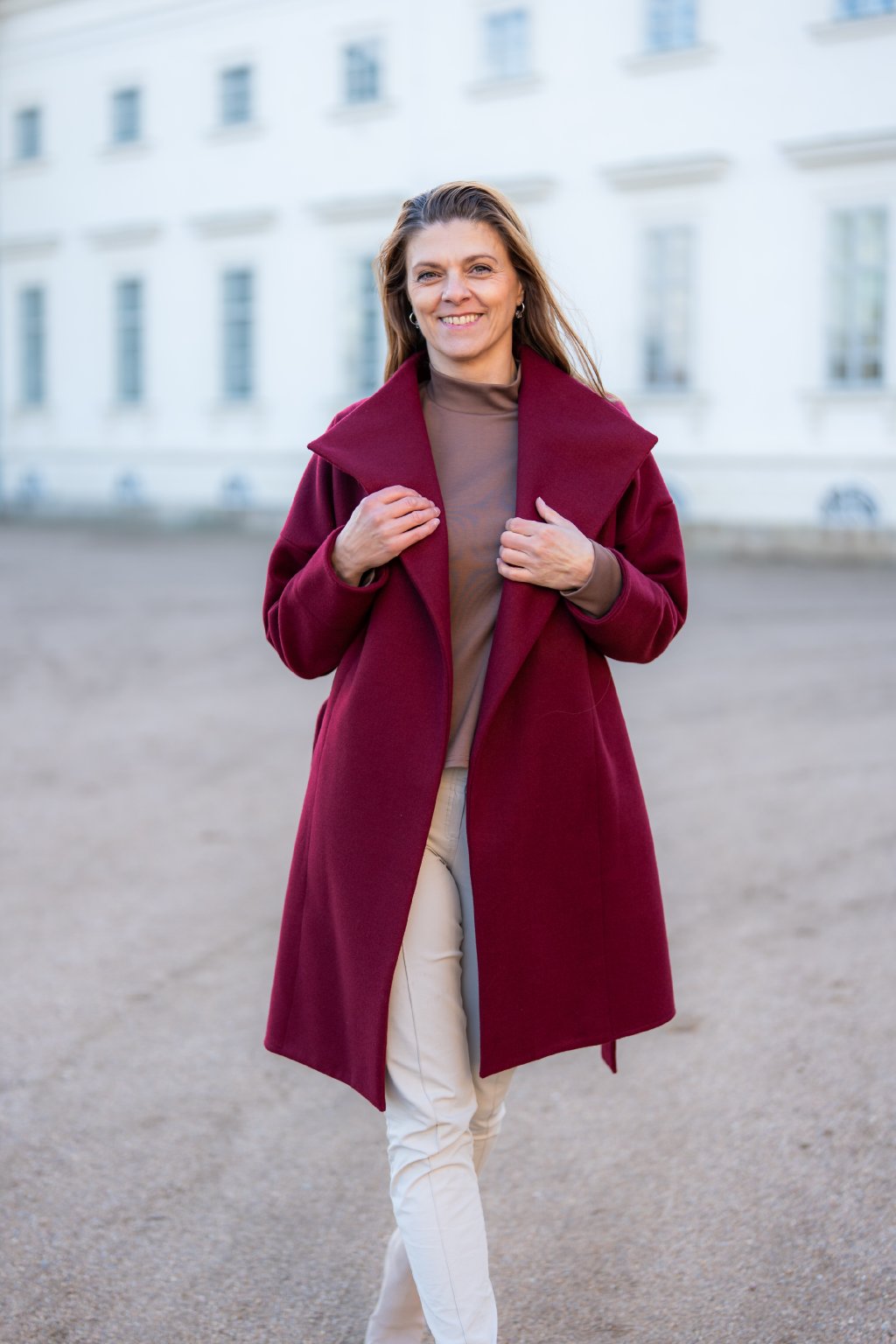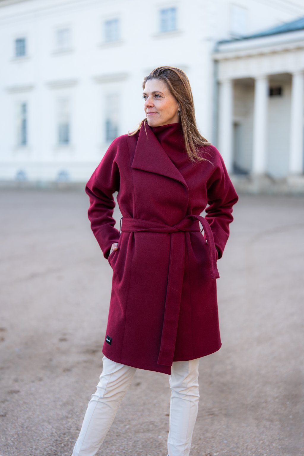 Flaušový kabát elegantního střihu, má výraznou podšitou klopu, do které se můžete zahalit v chladnějších dnech. Krásně ho zkombinujete s kalhotami nebo přehodíte přes šaty a necháte rozhalený. Kapsy v bočních švech a pásek jsou samozřejmou a praktickou součástí kabátku.