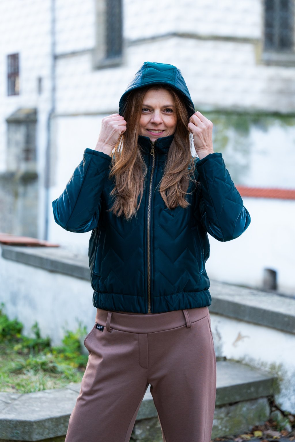 Kratší zateplená bunda z lesklého prošívaného materiálu, která zahřeje a zároveň působí lehce a mladistvě. Vyšší stoják příjemně chrání krk před zimou a praktická kapuce vás ochrání před větrem i deštěm. Hladká podšívka zajišťuje pohodlí při nošení a bunda se snadno kombinuje s džínami, kalhotami i sportovnějšími kousky.