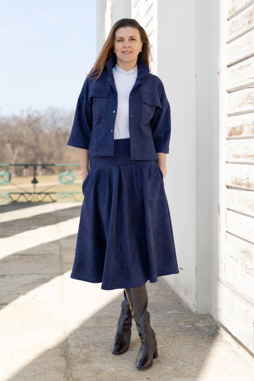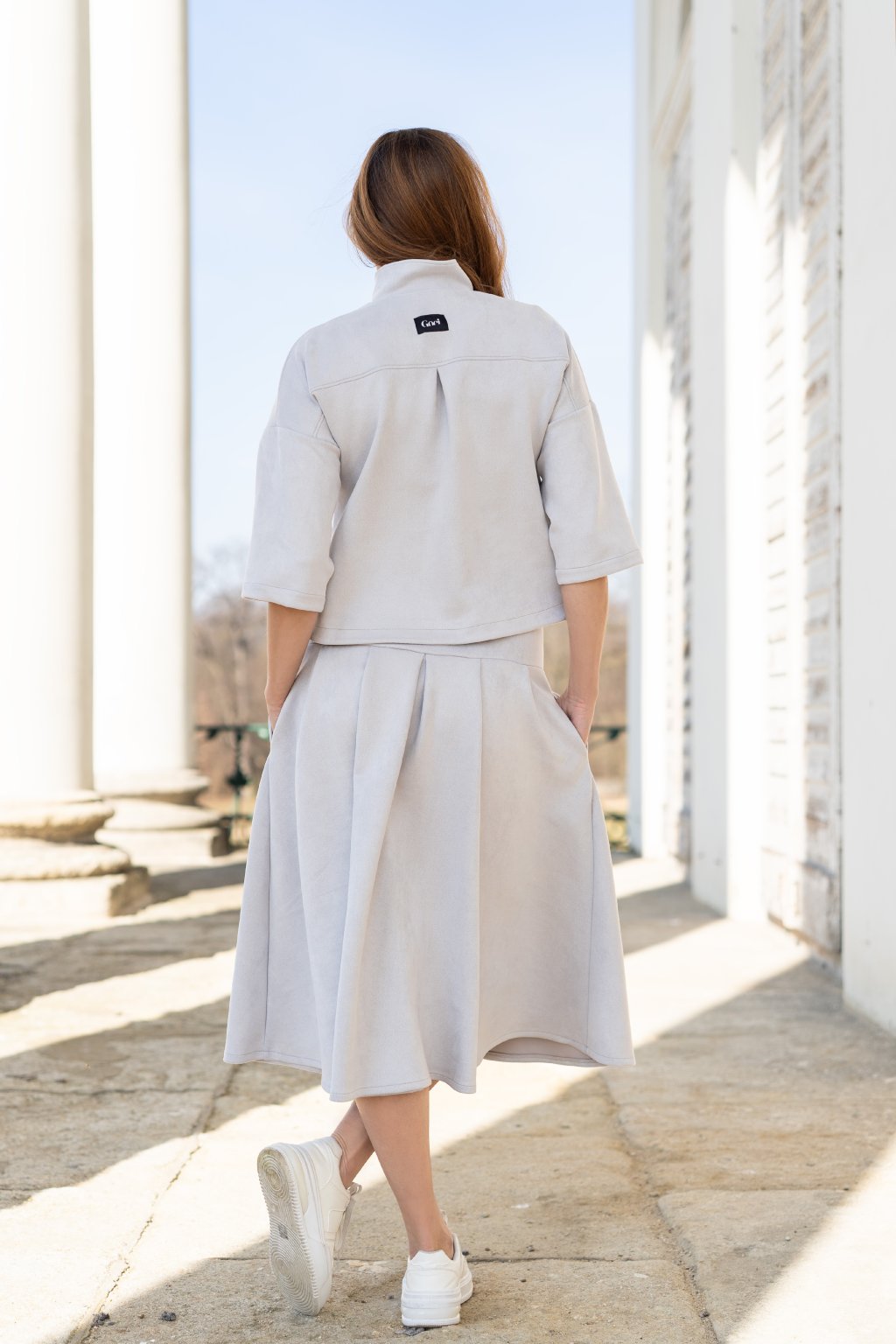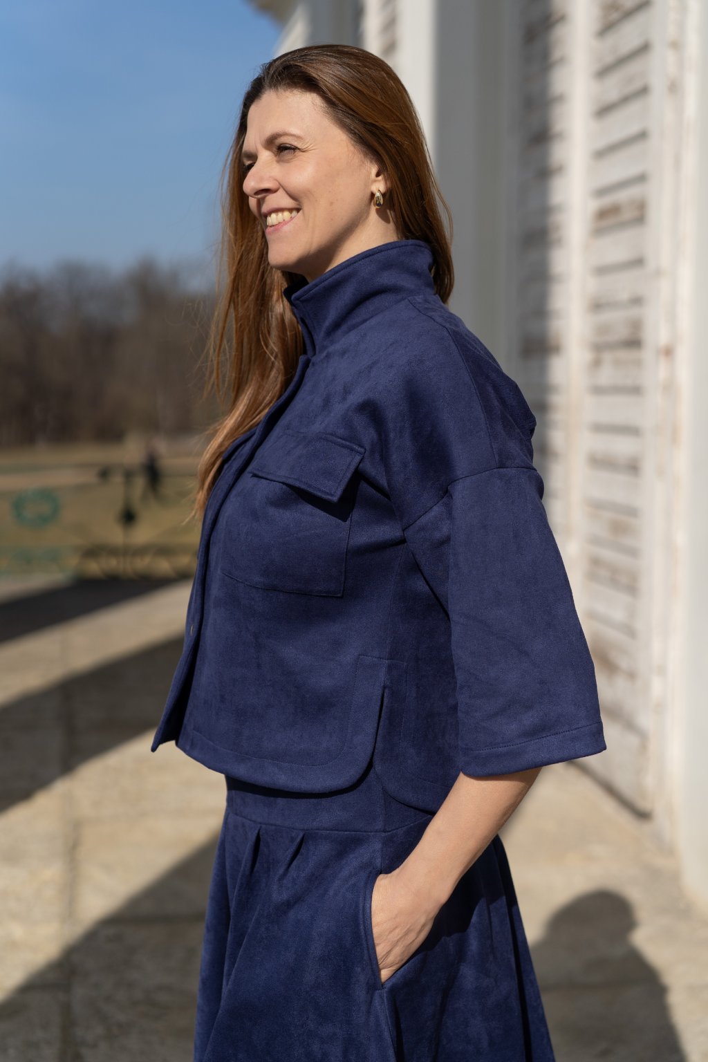 Lehká jarní bundička zapínaná na patenty, která spojuje pohodlí a styl. Je ušitá z pružného, jemně počesaného materiálu, který je mimořádně příjemný na dotek a zajišťuje maximální komfort při nošení. Volnější střih inspirovaný košilí působí ležérně a moderně, zatímco kulaté rozparky na bocích dodávají modelu originální šmrnc. Bundičku snadno zkombinujete s kalhotami i sukní, a vytvoříte tak outfit pro každou příležitost.